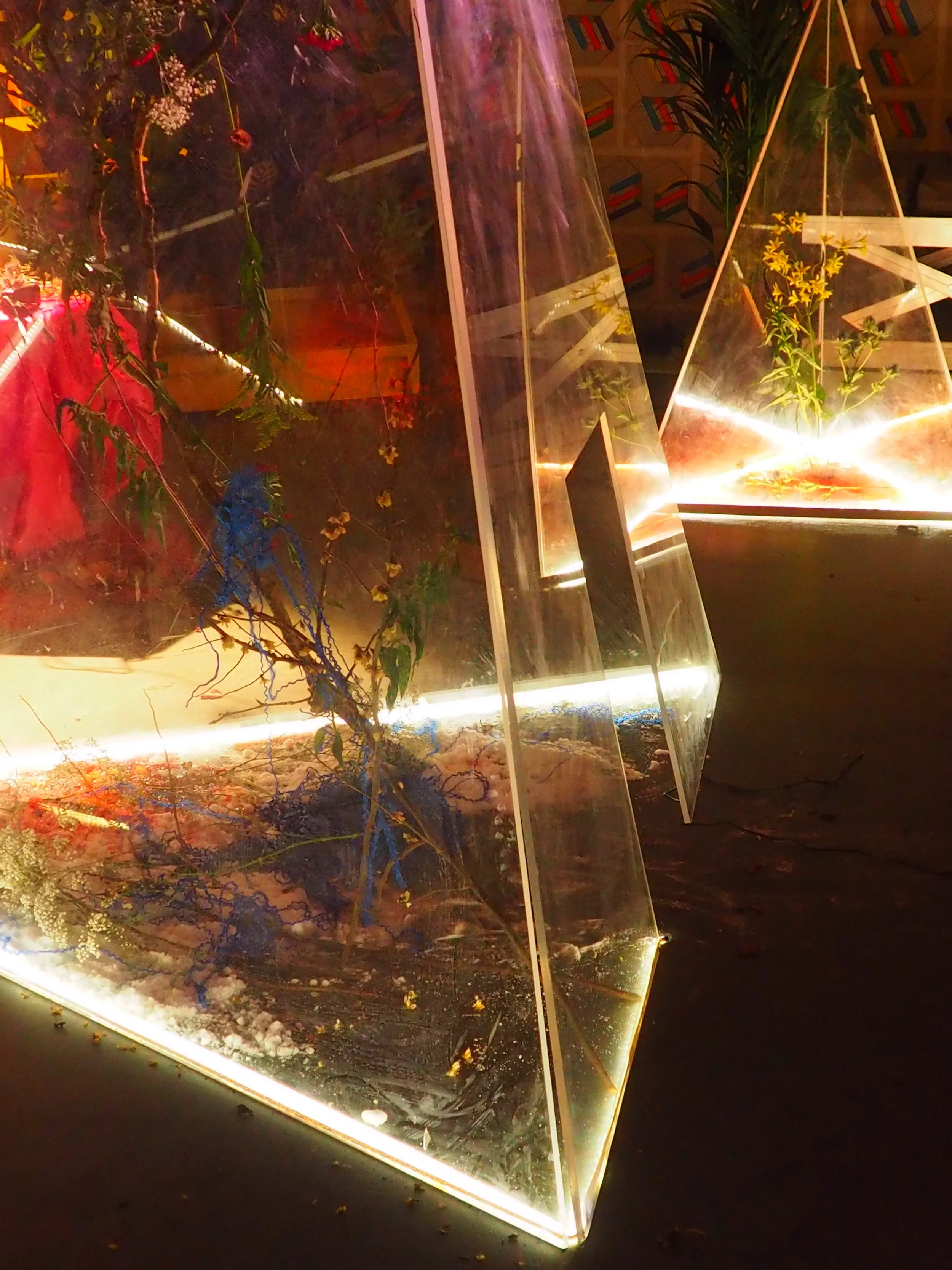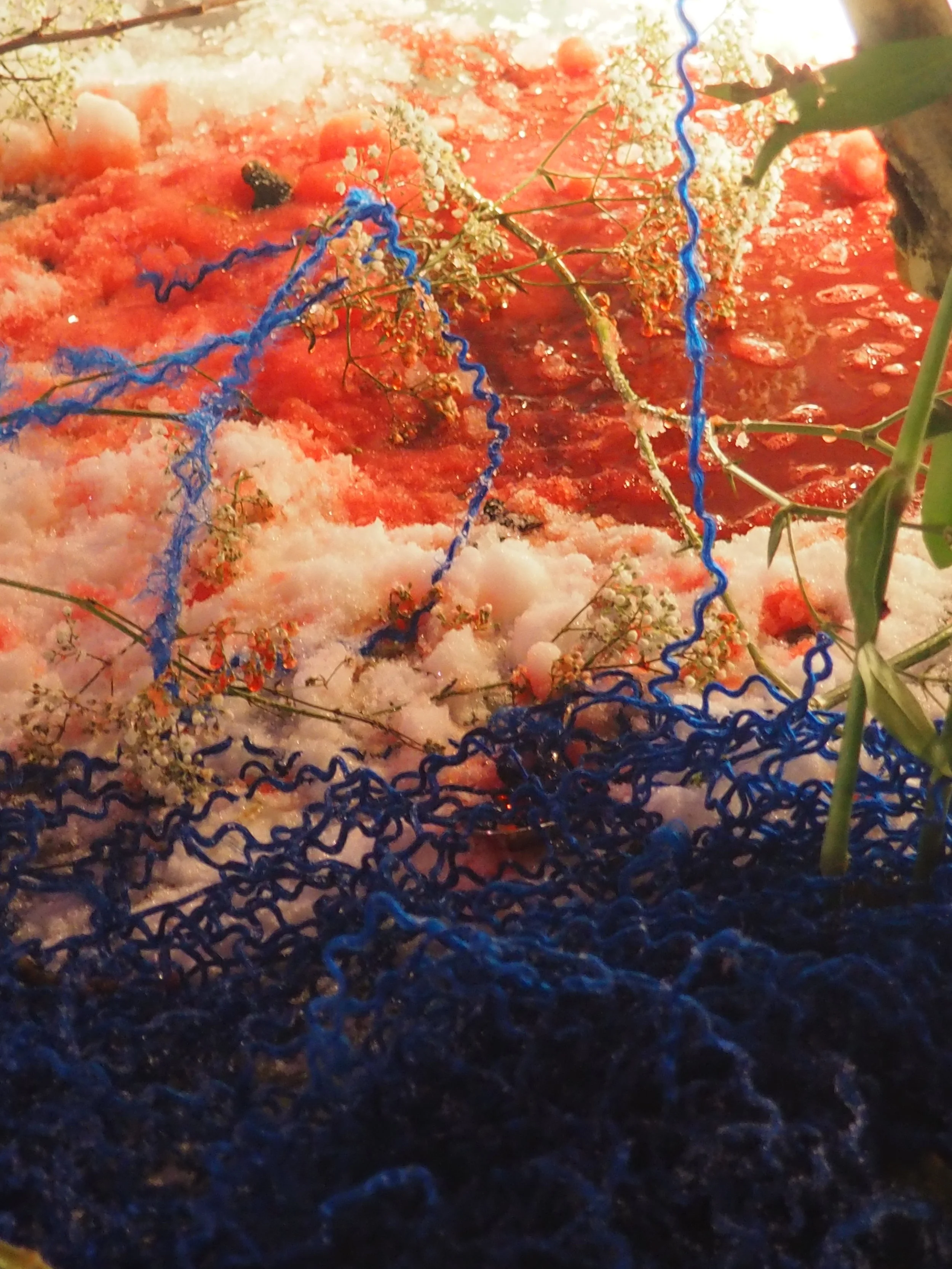 In performance, sculpture, sound, scent and video I build multidisciplinary installations where I propose a new reality and ecosystem. Like in a cocoon I build sacred, abstract worlds under a glass dome. Where everyone and everything, organic or artificial, living or dead is honored equally. Where beauty and her decay is embraced. A feminine, theatrical and sensual biotope.